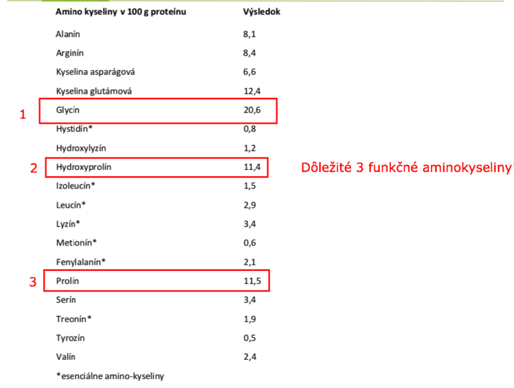 Hlavným rozdielom medzi kolagénom a klasickými proteínmi ako je srvátkový, či kaseínový alebo vegánske alternatívy, je práve hodnota vybraných aminokyselín.
